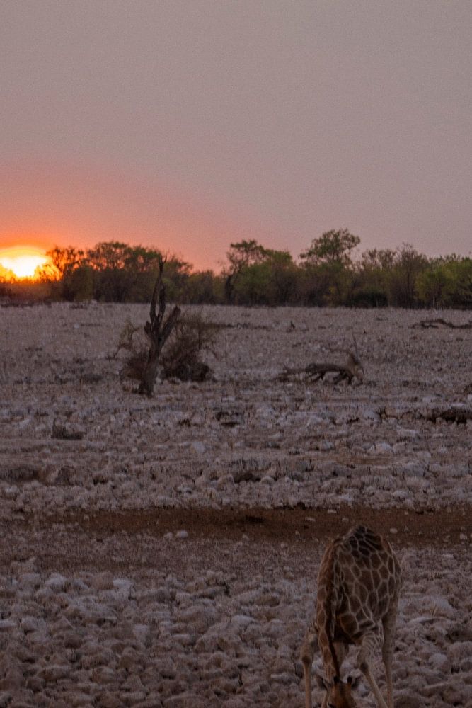 About "Giraffe at the waterhole at sunset in Namibia, Africa"