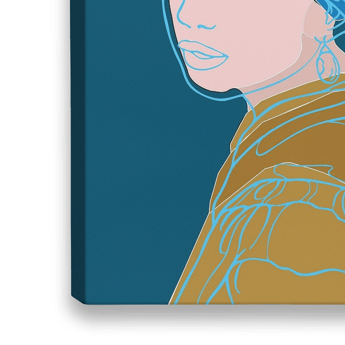 Bring current trend colors into your home. My version of the famous painting "Girl with pearl earring", around 1665 / 1667 in the original painted by Dutch painter Johannes Vermeer, in minimalist line art style. Modern colors with a lot of joy bring good mood to your walls.