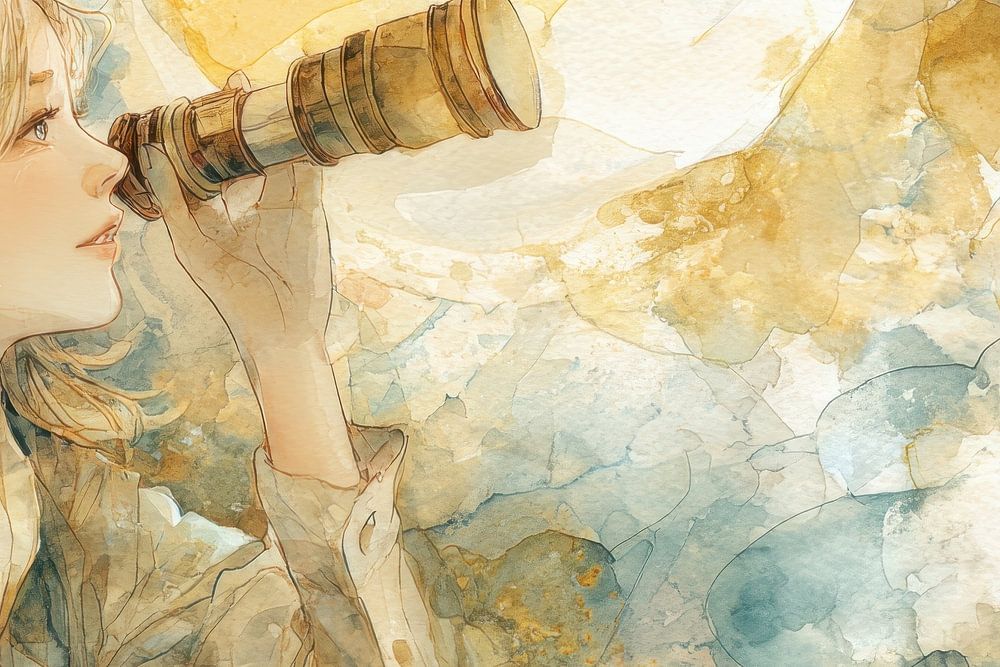 About ‘Girl with Telescope - Poetic Dreamscape’ by Peter Pen Drawings and Paintings