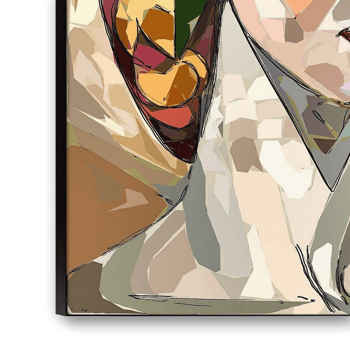 "Girl with the Red Rose" is a modern and expressive portrait that invites the viewer to explore the depth and layering of the image. The red rose on her chest immediately attracts attention and acts as a powerful symbol of passion, life and inner strength. It is as if the rose embodies the soul of the portrait, a source of emotion that contrasts with the geometric, fragmented style in which the rest of the face and background are constructed.