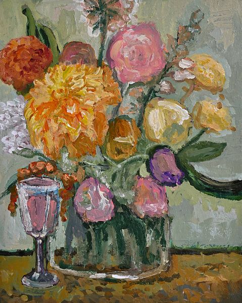 "Glaasje wijn" is a painting by the Dutch artist T. Koelemij