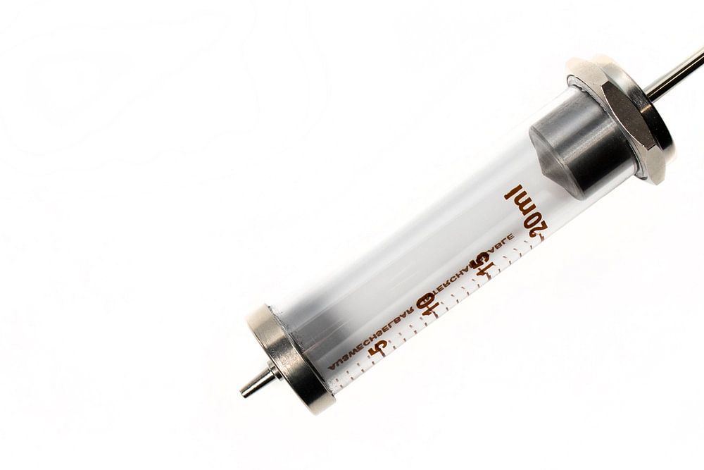 Glass syringe on a white background. Laboratory equipment. by N. Rotteveel