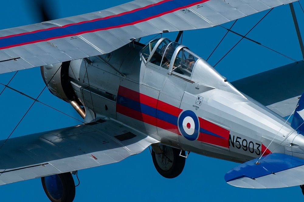 This Gloster Gladiator from the '30s flies during the historic flying show Flying Legends which was held annually at Duxford, England.