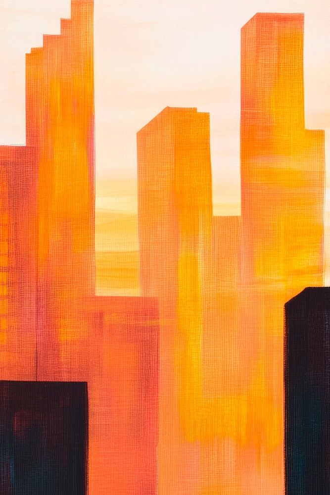 Buy this painting Glowing cityscape at sunset by Poster Art Shop as a reproduction on canvas, ArtFrame, poster and wallpaper, printed on demand in high quality.