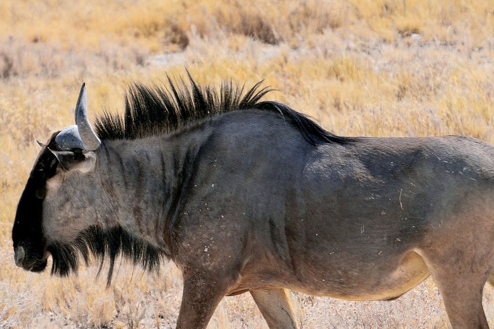 The wildebeest is a herd animal. They graze on the fields in large groups. They need each other as a group to be strong against predators.