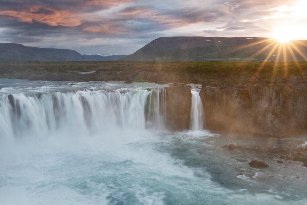 Prachtige waterval genaamd Godafoss in Ijsland tijdens zonsondergang.