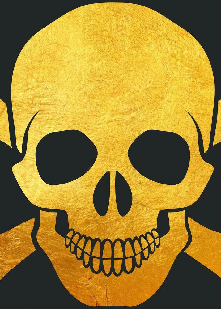 Buy this digital art artwork Gold Pirate Skull by artisticdesign1903 as a reproduction on canvas, ArtFrame, poster and wallpaper, printed on demand in high quality.