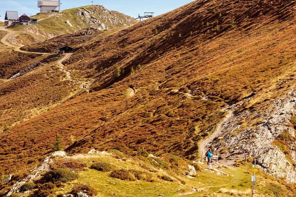 Hike over the ridge of the Goldeck mountain to the mountain station of the Goldeckbahn in the Austrian Alps