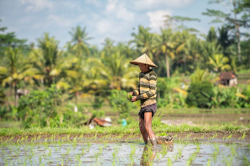 Buy this portrait Golden Awakening in the Rice Terraces by Lex van Doorn on canvas, ArtFrame, poster and wallpaper, printed on demand in high quality.