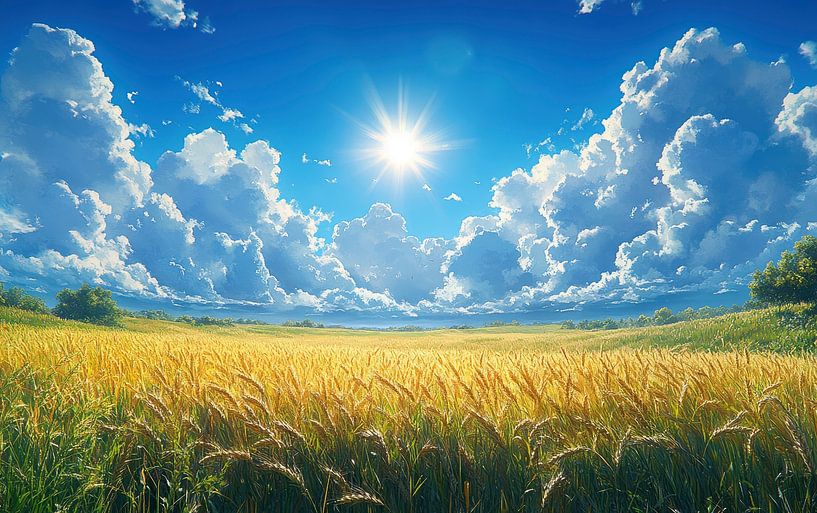 Buy this digital art artwork Golden Fields Under a Radiant Sky by Jaudat Efendi as a reproduction on canvas, ArtFrame, poster and wallpaper, printed on demand in high quality.