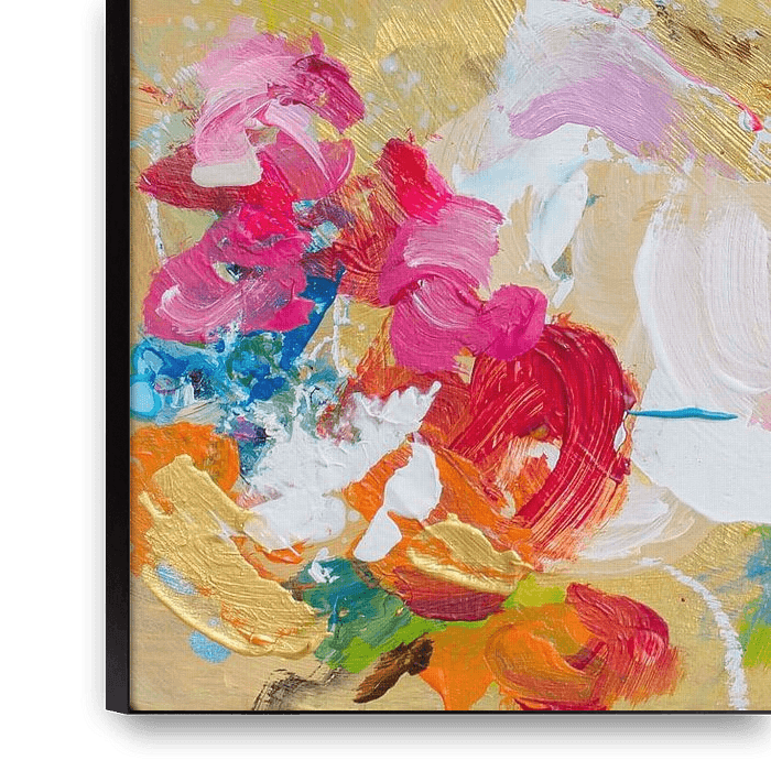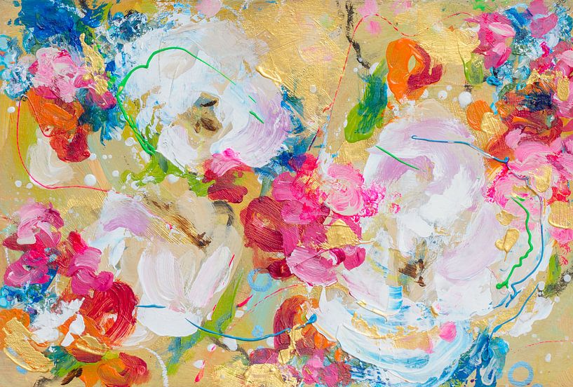 A vibrant bouquet beacons out to you. Bathed in a golden glow, its colours enveloping you like a sweet summer scent. When I paint intuitively, the result is almost always highly expressive, colourful floral scenes. These paintings exude freedom, energy and joy. Like an untamed garden where you can wander and let yourself be swept away…