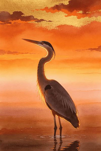 Buy this bird art Golden Hour Heron by Urbanwolves on canvas, ArtFrame, poster and wallpaper, printed on demand in high quality.