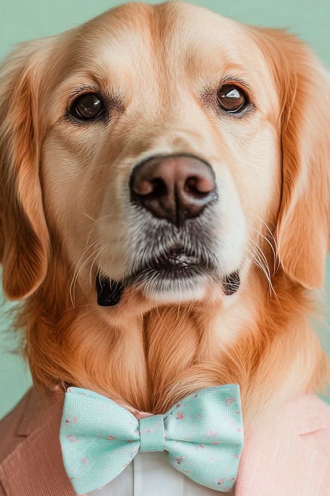 In a stylish pink suit with an elegant bow tie, this golden retriever radiates pure sophistication and charm. His gentle gaze and shiny golden coat give him a majestic aura that will turn even the chicest of parties pale. A true gentleman who enchants hearts and events alike!