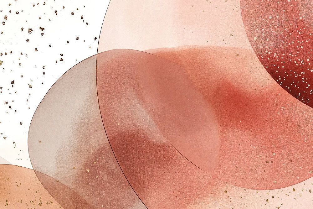 This abstract artwork creates a dreamy, cosmic atmosphere with transparent, overlapping circles in soft pink and beige tones. Golden speckles suggest stardust, while the airy composition evokes weightlessness and serenity. Soft color transitions and subtle textures give depth to the work. The harmonious interplay of geometric shapes and organic elements feels both modern and timeless. It invites contemplation and evokes associations with celestial bodies or microscopic structures, thus bridging the cosmic and the intimate.