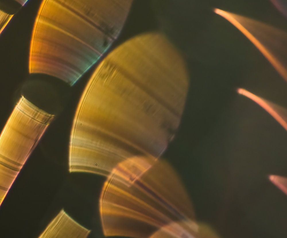 Each shape and hue tells its own story in this vivid image, where the golden glow of the sun envelops the world in an enchanting glow. The orange hues add a touch of energy to the composition, while the flowing shapes create a sense of movement and dynamism that stimulates the imagination.