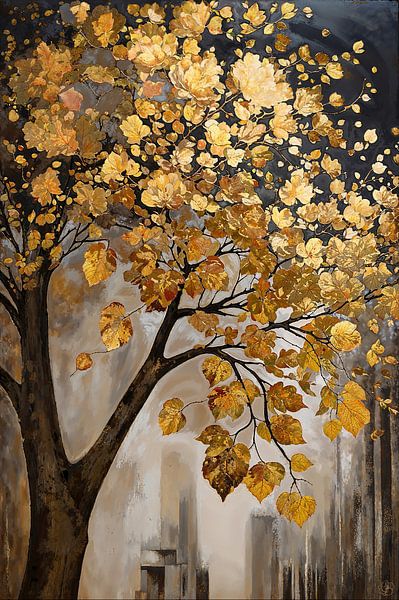 Golden Tree in Abstract Cityscape by Arjen Roos