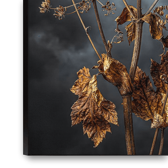 This motif captures the moment when autumn hands over the baton to winter. The delicate structure of the faded umbel glows in warm bronze and gold, as if…