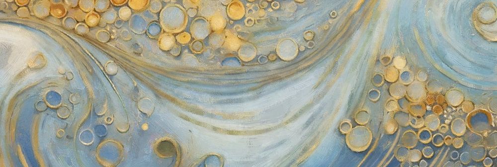 This work captures the power and beauty of a large wave about to break. Shades of blue and gold mix in flowing lines and circles, creating a sense of movement and energy. The subtle details and dynamic composition make it a striking piece that exudes both tranquillity and strength. Perfect for a modern living room or office, this piece brings a touch of nature and elegance to any space.