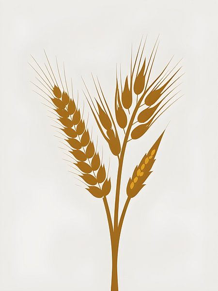 An elegant silhouette illustration of wheat stalks with detailed grain heads and characteristic awns (bristles) rendered in warm golden tones against a cream background. The classic agricultural composition showcases multiple wheat ears in a natural cluster. Perfect for bakery branding, flour packaging, farm-to-table restaurants,…