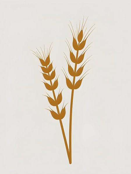 An elegant silhouette illustration of wheat stalks with detailed grain heads and characteristic awns (bristles) rendered in warm golden tones against a cream background. The classic agricultural composition showcases multiple wheat ears in a natural cluster. Perfect for bakery branding, flour packaging, farm-to-table restaurants,…