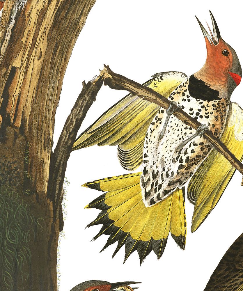 John James Audubon was born on April 26, 1785, in Les Cayes, Santo Domingo, France (now Haiti). From his father´s Pennsylvania estate, Audubon made the first American bird-banding experiments. He began collecting all things ornithological and making pencil and pastel sketches of birds. As his confidence as an artist grew, he ventured into watercolors, the medium he would most often employ. Audubon became a traveling artist, teaching occasional pupils, but always painting local birds and their natural habitats. His major work, a color-plate book entitled The Birds of America (1827–1839), is considered one of the finest ornithological works ever completed. Audubon died on January 27, 1851 in New York City. Note: This artwork can also be obtained without accompanying text in the illustration. Please contact us.