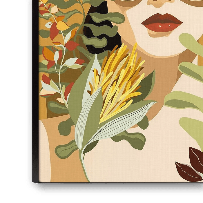 Together, they form a portrait of a woman, wearing sunglasses, half-hidden behind flowers.