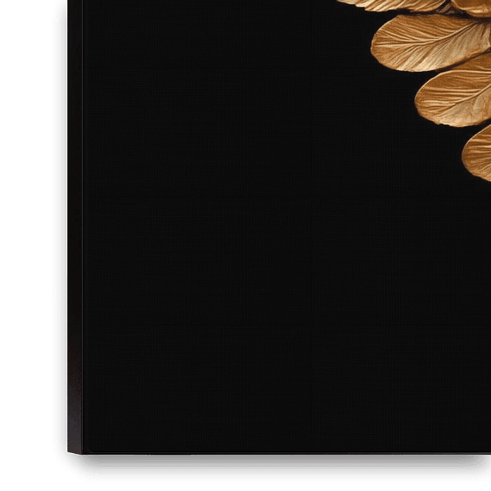 Golden angel wings portrait panorama painting that will be an elegant and luxurious addition to any room. With its unique and stylish look, it is a true eye-catcher. The brilliant minimal colours and unusual design make this artwork 100% unique and original. It is the perfect photo print to complete your interior.