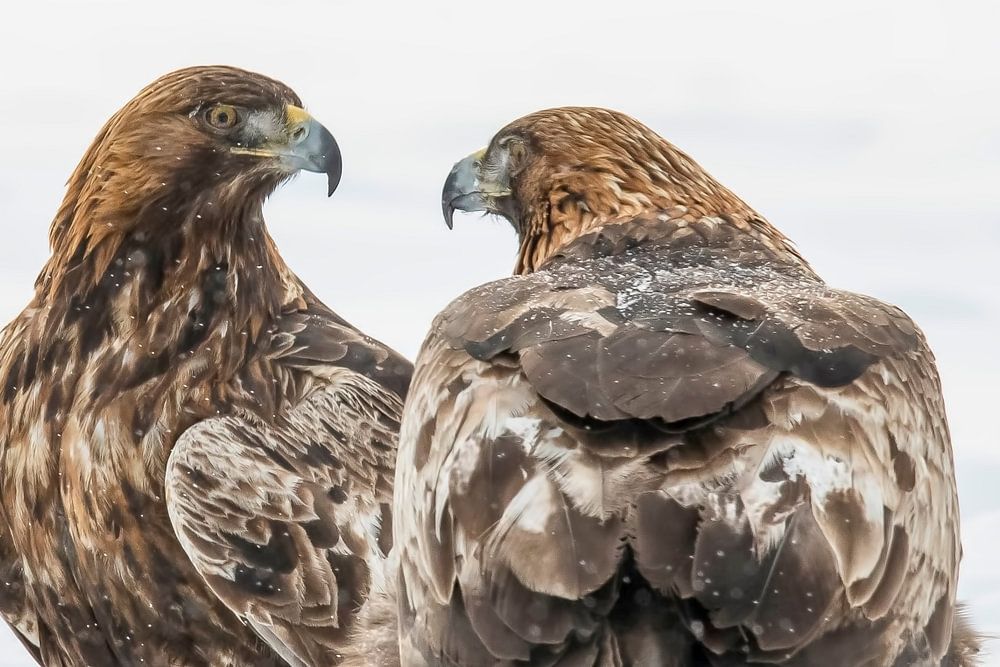 The Golden eagle is one of the larger birds of prey in Europe. These photos were taken in northern Sweden in the winter. His English name is Golden Eagle because of the gold colored head and neck feathers.