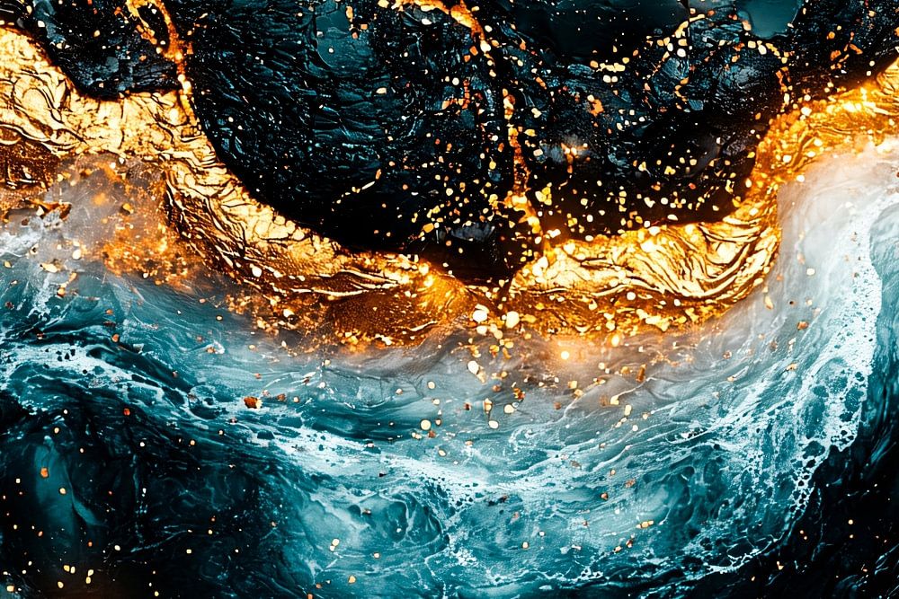 Get carried away by the energy and depth of this abstract artwork. The gold accents seem almost fluid, while the rich shades of blue and black evoke a sense of mystery. Ideal for modern interiors, this design adds a touch of luxury and dynamism to any space. Perfect for lovers of contemporary art looking for a striking statement on the wall.
