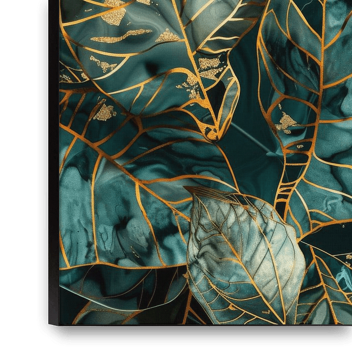 With golden accents that follow the organic shapes of the leaves, this artwork seamlessly blends elements of nature with a luxurious aesthetic. The deep green tones and delicate golden lines create a mesmerising contrast that exudes elegance and tranquillity. Ideal for those with a penchant for botanical art and an eye for the…