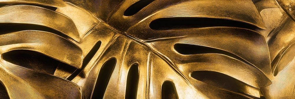 In shimmering gold, the artistically designed monstera leaves radiate an elegant pinch of tropical flair. Their curved shapes and striking incisions lend the composition a sense of movement and vibrancy. The gentle contrast with a dark background enhances the luxurious look and invites you to dream of exotic garden landscapes.