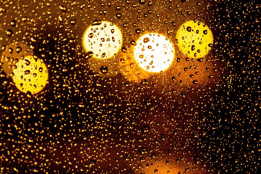 Dreaming on a winter evening at the window, in the light of the golden raindrops