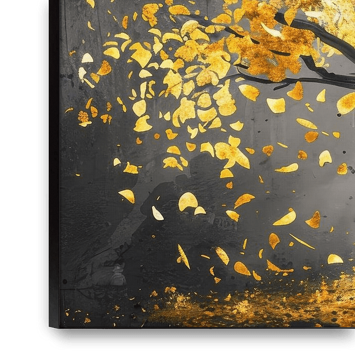 This unique artwork depicts a majestic tree with golden leaves shining against a grey background. The dynamic design creates a captivating contrast between the vibrant colours and the calm background, making it ideal for stylish and modern decor. This striking tree can be a wonderful addition to any space, from an office to a bedroom,…