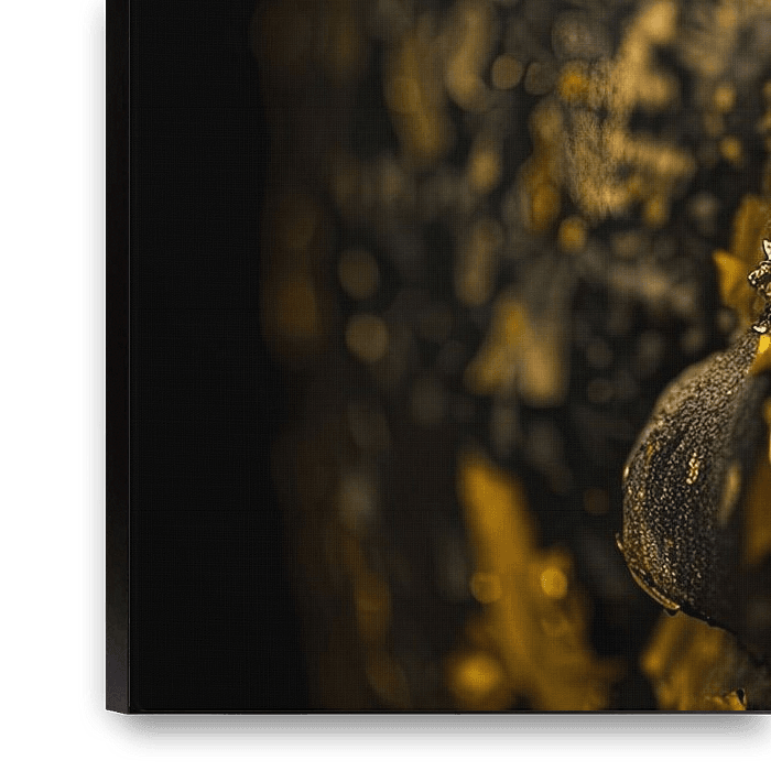 This detailed close-up of a Buddha face combines the calm serenity of Zen with an ornate golden patina. The flaking surface and shimmering gold tones create a mystical yet timeless aura. This masterful composition is reminiscent of the transcendent wisdom and inner peace symbolised by the Buddha. A perfect piece for lovers of classical…