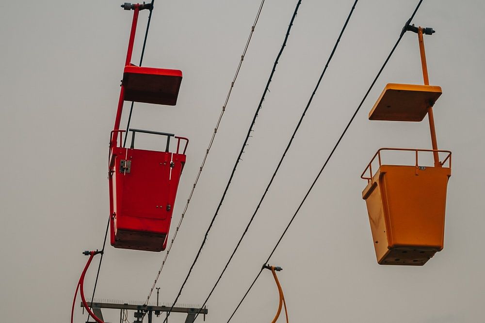 A passenger gondola across a river on the southern French coast. This gondola takes you from one side of the harbour to the other side.