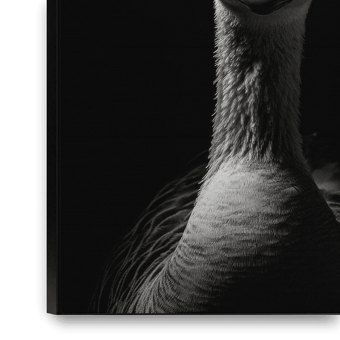 A fascinating view of the majestic goose, shrouded in a play of light and shadow. Its penetrating expression and the fine details of its plumage cast a spell over the viewer. This powerful work of art finds an ideal place in the living room, where it can stimulate lively conversation and create a unique atmosphere.