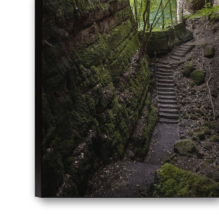 Beautiful gorge and rock formations: Gorges de Loup, during the Müllerthal trail in Luxembourg. With a walk through the woods and nature, we ended up at this beautiful location. Will you hang this beautiful photo print on your wall?