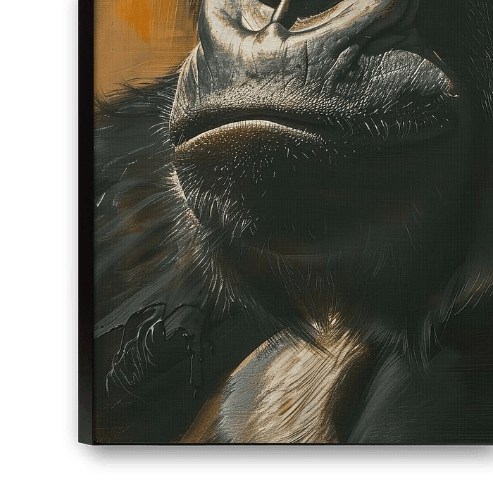 Details: gorilla, sunglasses, orange, black, brown, reflection, portrait, animal, cool, sunset