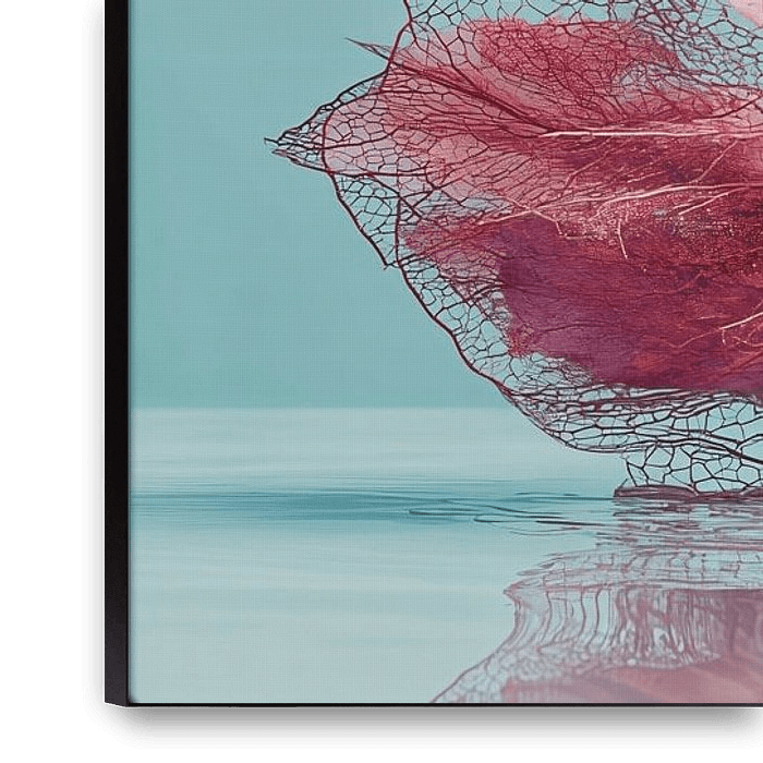 This artwork depicts two delicate, translucent petals against a serene blue background. The soft pink and red hues contrast beautifully with the delicate, almost tactile texture of the petals, while their reflection in the water's surface freezes a moment of intimate connection. The work exudes poetry about transience, vulnerability,…