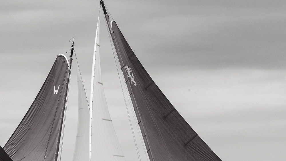 It sometimes looks like skûtsjes perform a graceful dance as they cruise upwind to the upwind buoy. Here the ships sail on the IJsselmeer in the bay of Lemmer.