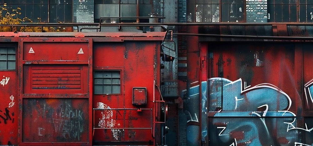Buy this digital art artwork Graffiti on the warehouse by Arndt-Christoph Föcks as a reproduction on canvas, ArtFrame, poster and wallpaper, printed on demand in high quality.