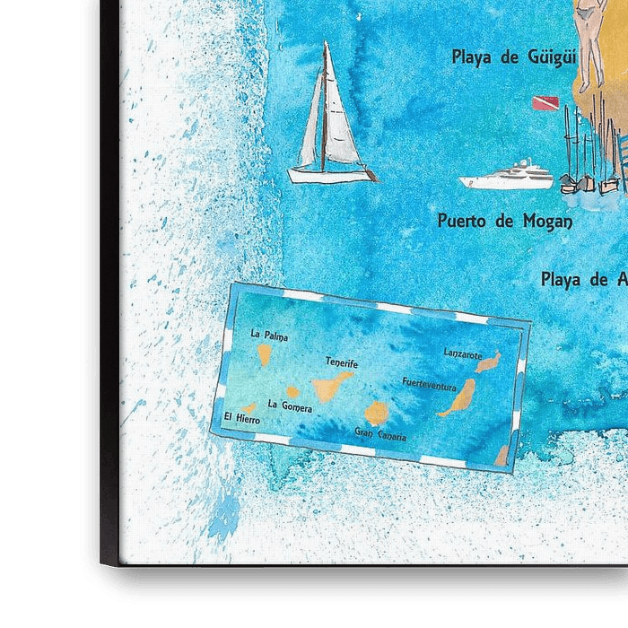 Buy this digital art artwork Gran Canary Canarias Spain Illustrated Map with Landmarks and Highlights by Markus Bleichner as a reproduction on canvas, ArtFrame, poster and wallpaper, printed on demand in high quality.