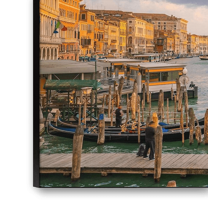 I made this photograph in late afternoon as sunlit clouds opened above the Grand Canal and a gondola crossed the center line. The facades warmed to soft gold and the water carried gentle color without losing texture. I wanted energy that feels welcoming, the everyday traffic of the canal shown with clear rhythm and room to breathe.