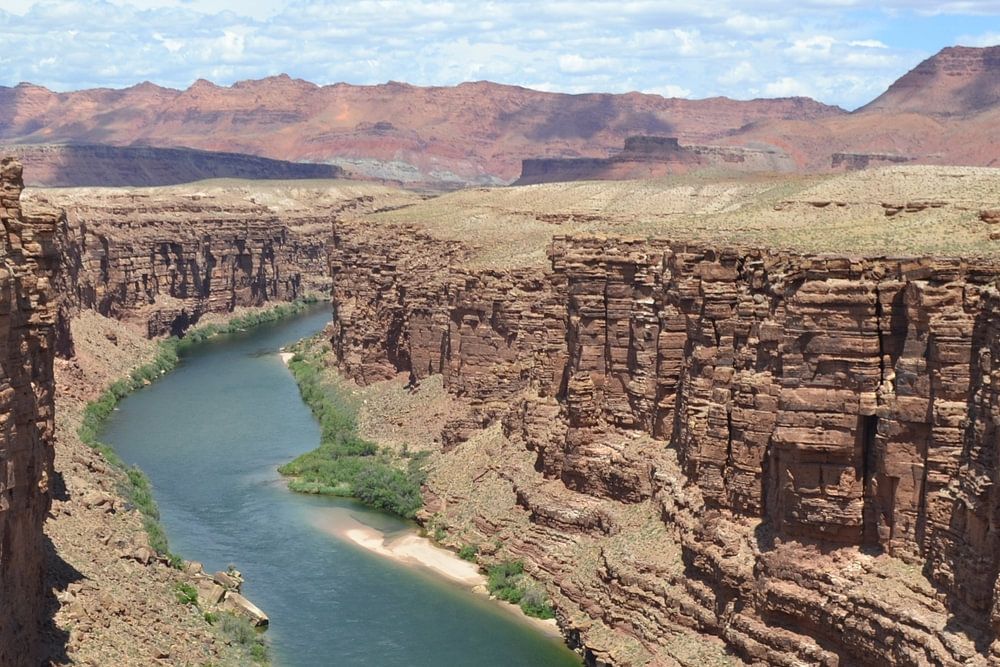 The river rises in the White Mountains. The picture was taken on the way to the Grand Canyon. From the bridge we looked down at the river. Rafters were no more than a dot on the horizon.