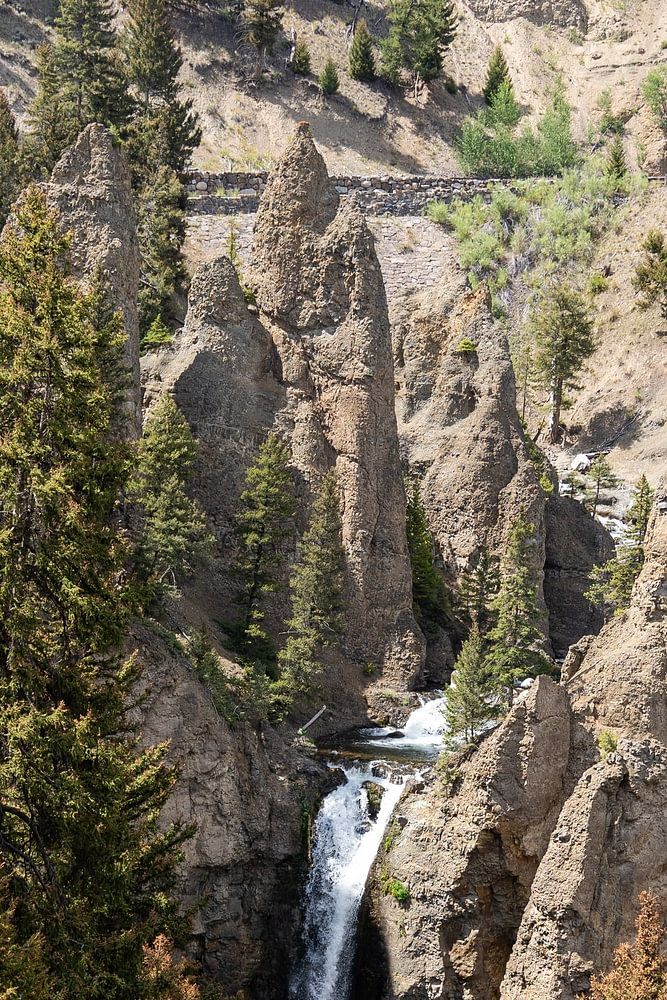The colours of the grand canyon of Yellowstone were created by the action of hot water on volcanic rock. It was not these colours but the yellow banks of the river at its distant confluence with the Missouri River that gave the Minnetaree Indian name that French trappers translated as roche jaune, yellow stone. The canyon has deepened rapidly more than once, perhaps due to large glacial eruptions. Today, little deepening takes place.