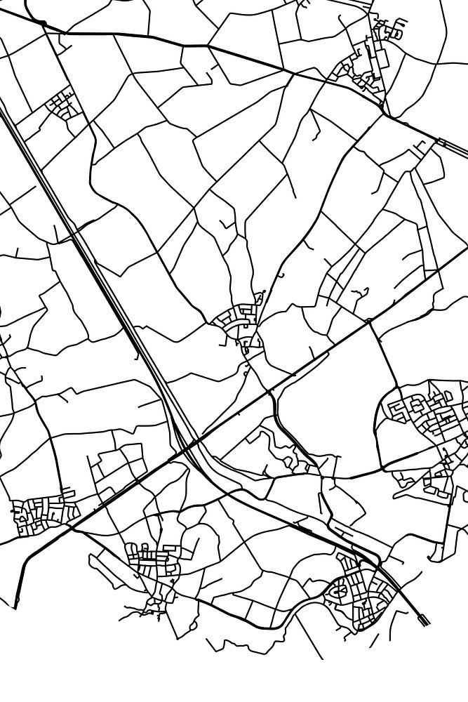 Black and white map, street map or street plan of Grathem. Grathem is located in the municipality of Leudal, province of Limburg. The city map includes all public roads in Grathem. Furthermore, the map features the coordinates of the center of Grathem.