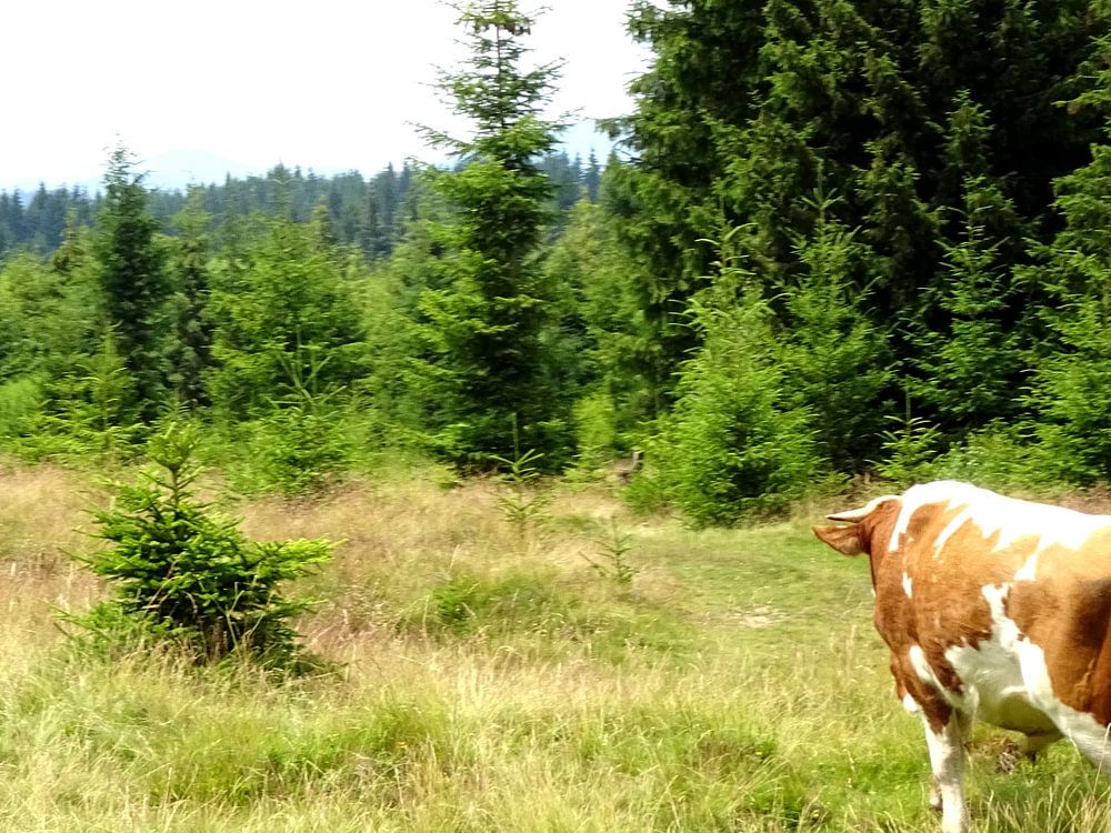In Roemenië zijn er nog veel dorpen waarbij inwoners 1 of 2 koeien hebben. Per dorp heb je dan een aantal mensen die dagelijks met de koeien op pad gaan, de natuur in (vlakbij het dorp). Hier een foto van een koe op de weg, de andere koeien (buiten de foto om) zijn al een eindje verderop.