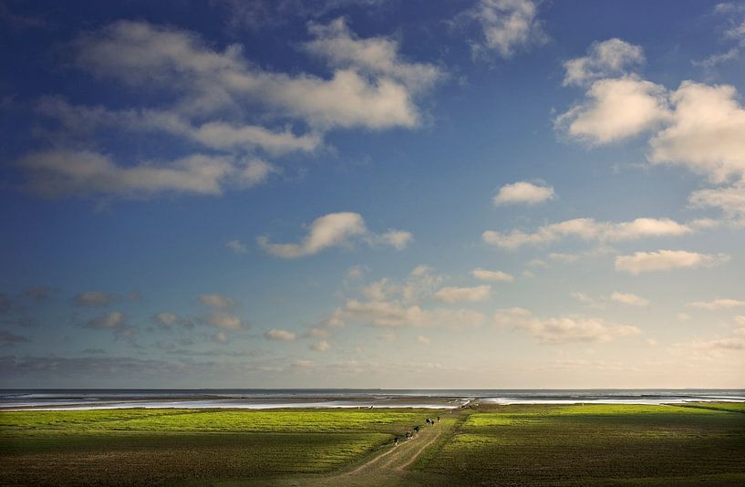 Cows graze in the salt marshes of the Wadden Sea Groningen