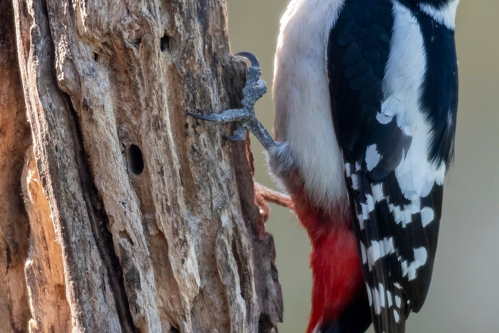 The great spotted woodpecker is the best known and also most common species in the Netherlands. Mainly in forest areas, of course, but you can also come across them in urban areas. With its distinctive sound and of course hammering with its bill on the trees, you can hear it from a great distance.