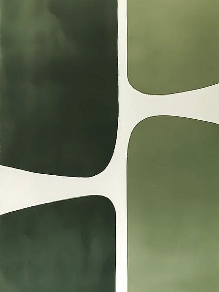 Clean lines and organic forms in deep green tones create a calm, modern balance.